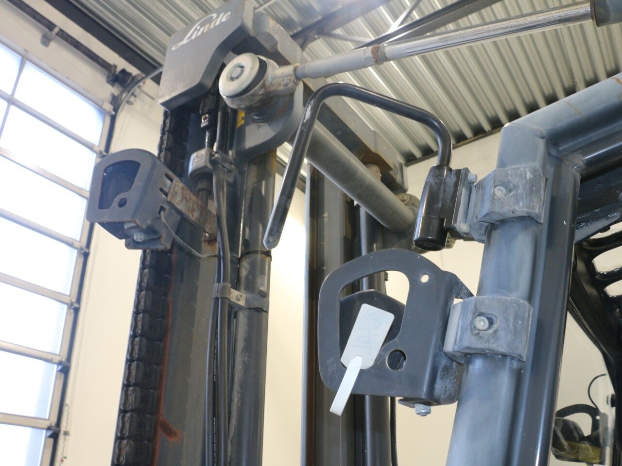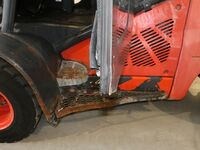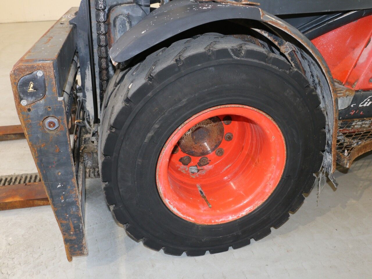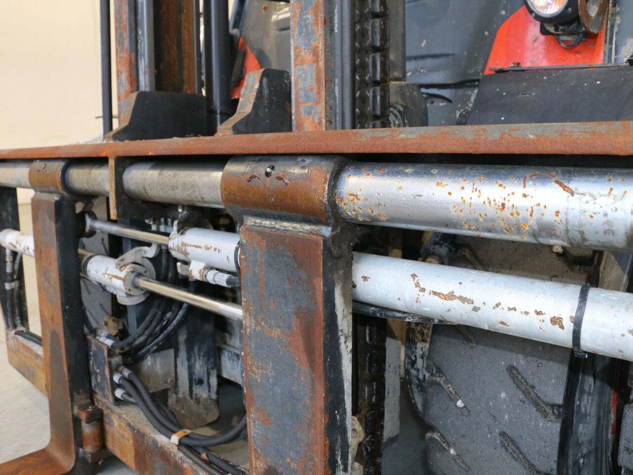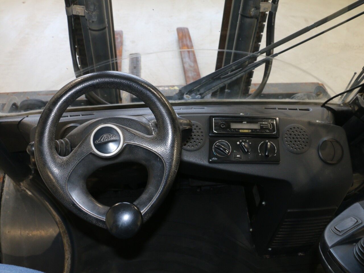 forks warn, tilt cylinder right side sweats, A/C not working, radio not working, inner mast warn