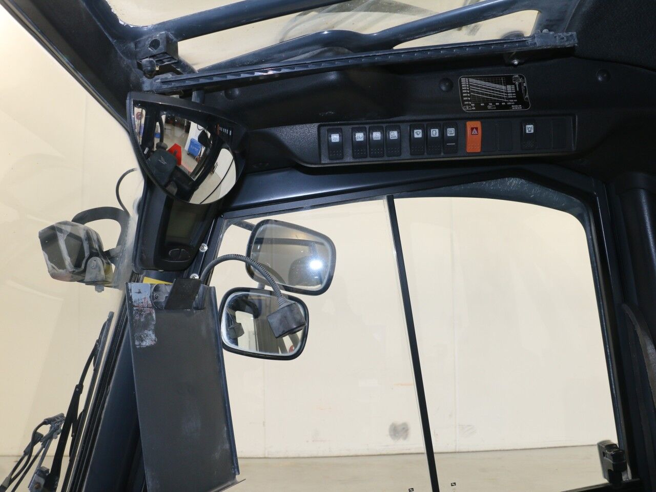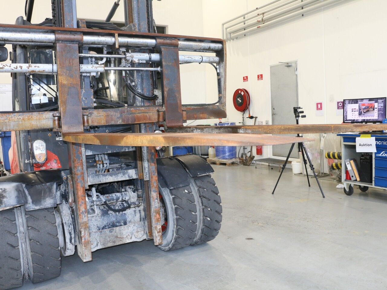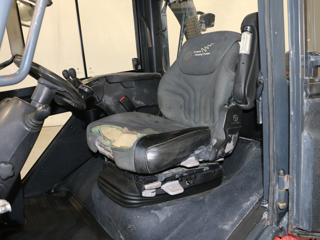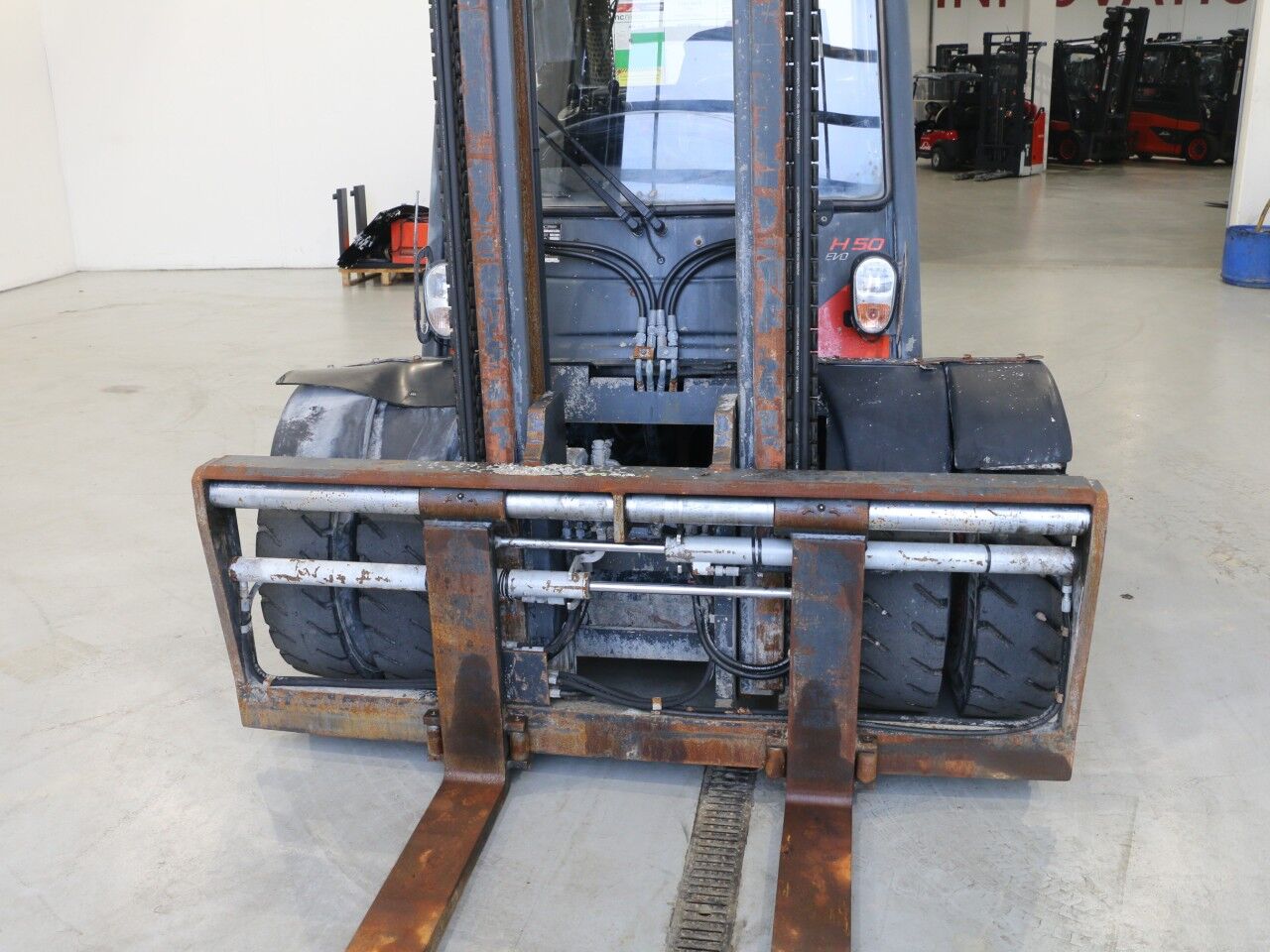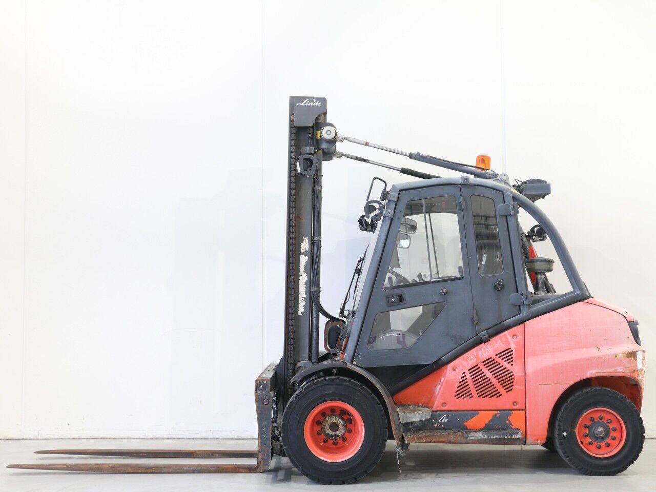 forks warn, tilt cylinder right side sweats, A/C not working, radio not working, inner mast warn